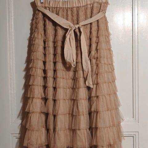 Koko XL, mutta nafti, sopii koolle L.-XL Vyötärö joustaa ja erittäin paljon, vyötärö joustamattomana 82-83cm. Hameen pituus n. 98cm.
