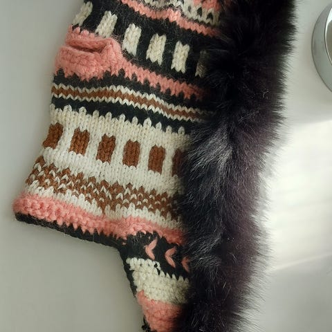Käsinneulottu kissan villapaita violetti