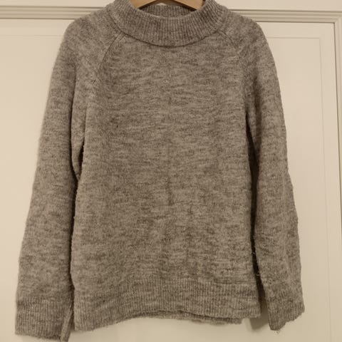 Everest välikerrastopaita koko 122/128. Harmaan osan materiaali villaa, hihat polyesteria.