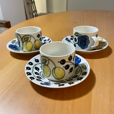 Myydään Arabian Paratiisi teekupit 2 kpl sekä lautaset 2 kpl.