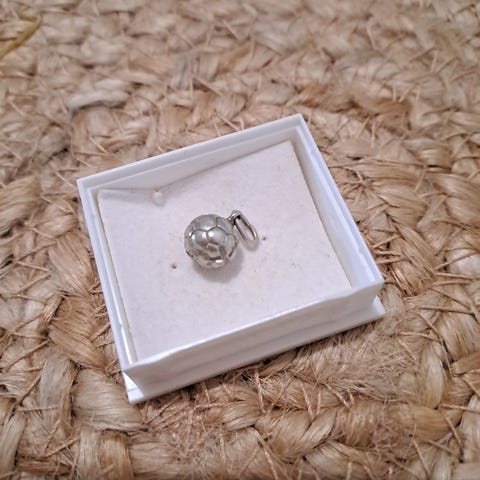 Hopinen jalkapalloaiheinen nappuöakenkäriipus.