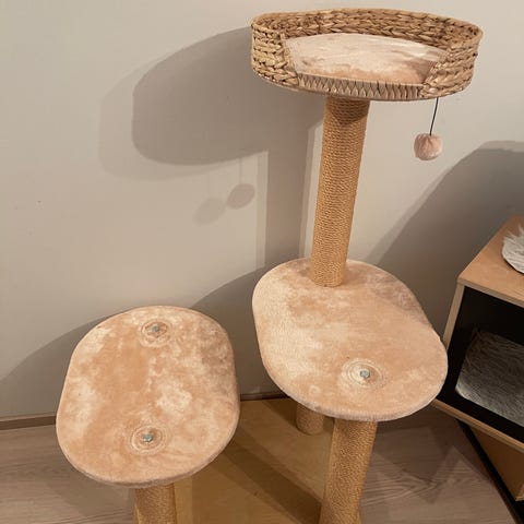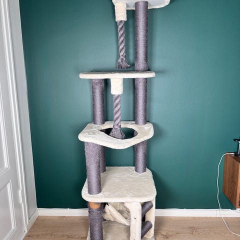Kiipeilypuu on hyvässä kunnossa. heti käyttövalmis. Tarjoaa kissallesi mukavan leikki- ja lepoalueen.
