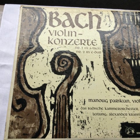 Deutsche Grammophon Special -levy, joka sisältää viulukonsertot. Vinyylilevy, jossa esitetään viuluteoksia, mukaan lukien Max Bruchin ja Felix Mendelssohn-Bartholdyn viulukonsertot. Levy on tarkoitettu klassisen musiikin kuunteluun.