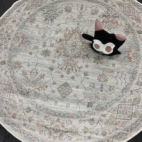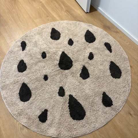 Pyöreä valkonen matto höyrypestynä juuri.