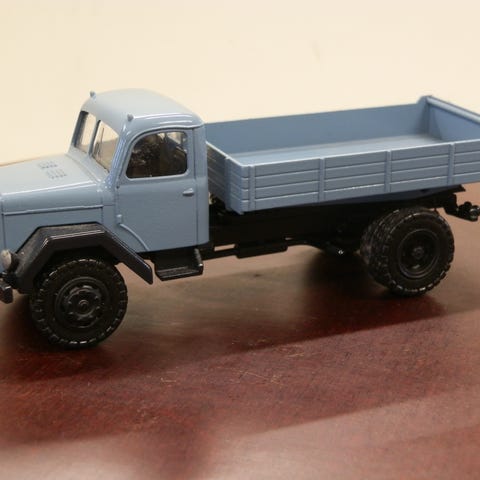 Magirus-Deutz Saturn II pienoismalli, kovassa muovisessa suojakotelossa.