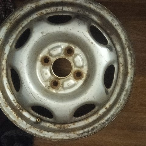 14-inch alloy rims installed on summer tyres. Rims are in good condition with no rust—they just need a wash (not cleaned in the pictures).