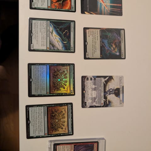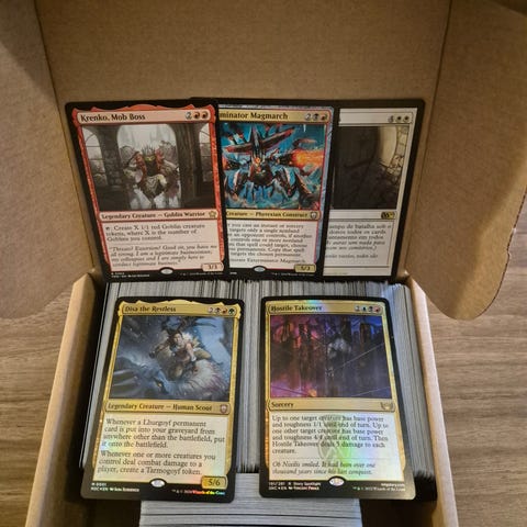 Noin kilo MTG kortteja. Kuvissa näkyvät raret ja mythicit, muuten bulkkia. Ei sisällä landeja tai tokeneita