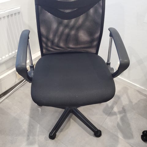 Mukava ja tukeva musta työtuoli hyvässä kunnossa.