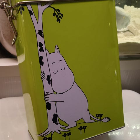 Myydään Muumi-aiheinen peltipurkki, valmistaja Martinex.