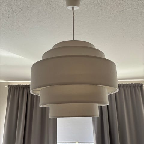 Toimiva, siisti kattolamppu. Varjostimet ehjät. Led kynttilälamput tulee mukaan.