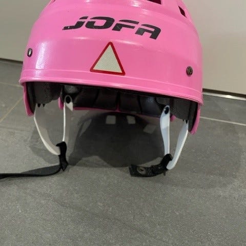 Meille uutena ostettu, yhden tytön muutamia kertoja käyttämä luistelukypärä (Jofa HT 415, koko medium 51,5-55,5cm, ovh n 40€).