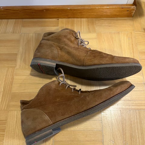 Syvän viininpunaiset Högl-mokkasiinit mokkanahkaa. Kengissä on kiilakorko ja pörheä turkissomiste, jota koristaa pieni kultasävyinen metalliyksityiskohta. Jalkineet edustavat tyylikästä ja mukavaa designia.Koko 4 1/2 (todennäköisesti UK/AU-koko).Koron korkeus n. 4 cmVastaa noin kokoa 37Valmistaja: HöglVäri: viininpunainenMateriaali: mokkanahka, turkis, kumi