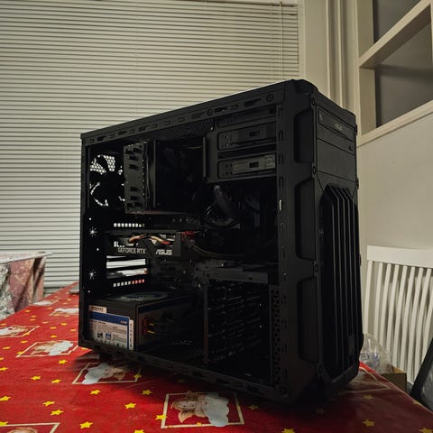 Vuosi sitten päivitin emolevyn, prosessorin ja ram muistin. Emolevy ei tue wifi yhteyttä joten vain ethernet tai erillinen antenni hankittava. Kun vaihdoin emolevyn niin kopan johdot eivät enää yltäneet paikoilleen joten valot ja virtanäppäin ei ole yhdistettynä. Ulkoisen virtanäppäimen johto on 1,65m joten sen voi asettaa minne haluaa.