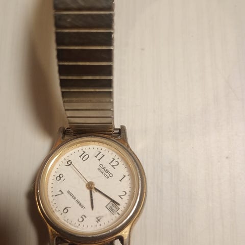 Myydään 1970-luvun lopun pieni, nätti ja siro naisten digitaalikello Casio Casiotron 26CL-20, leveys vain 22mm. Rannekkeen kanssa pituus n. 15cm. Erittäin hyväkuntoinen. Kuvasta poiketen paristo lopussa, mutta kello toimii täydellisesti. Toridiili tai käteiskaupat kotihoodeilla.
