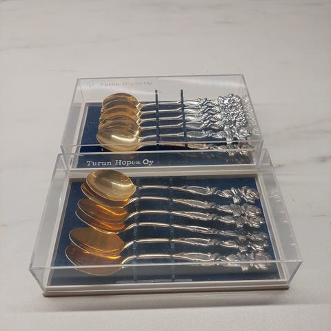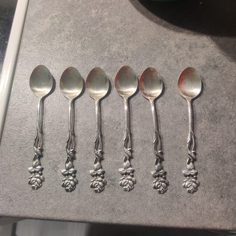 Ruusu hopealusikat 6kpl, lusikkaosassa värjäymää.