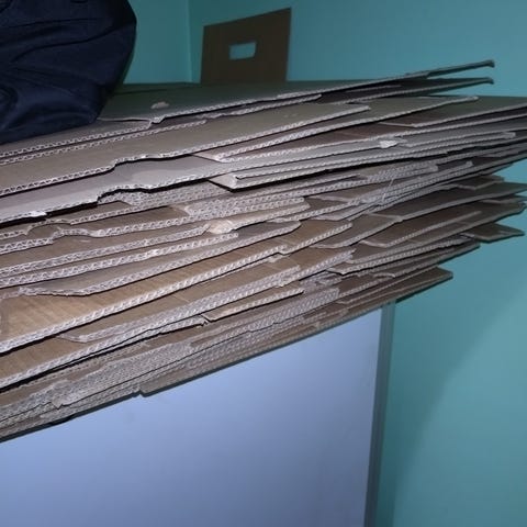 Muuttolaatikot vaihtuvat talouspaperipakettiin.