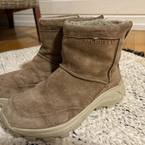 Merrel todella lämpimät, pitävällä pohjalla talvi saappaat. Koko pieni 37. Mutta kantakuppiin n.23.3cm pohjallisessa. Todella laadukkaat kengät pakkaspäiviin.