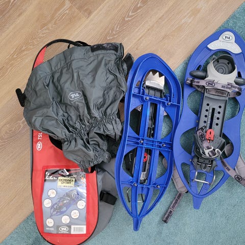 Vain kolme kertaa käytetyt parikymmentä vuotta vanhat TSL 710 lumikengät. Kengät ovat olleet lämpimässä varastossa. Mitat kuvassa neljä. Soveltuvat 30 - 70 kg painoisille.