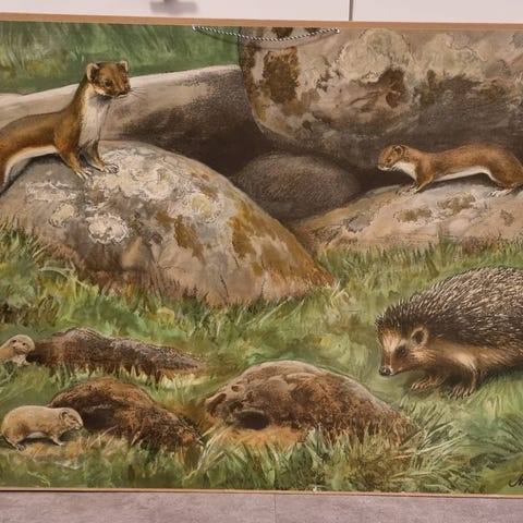 Kehykset (102×74 cm) kulahtaneet, mutta taulu pidetty siinä suojassa.