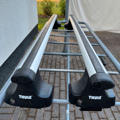 Thule kattotelineen poikkipalkit, valmistettu alumiinista. Mukana kiinnikkeet ja asennustarvikkeet. Ostettu opelin kautta auton kanssa niin thulen logon tilalla pallosalama. Muistelen että malli olisi wingbar evo. Valmistettu ruotsissa kuten thulet yleensä.