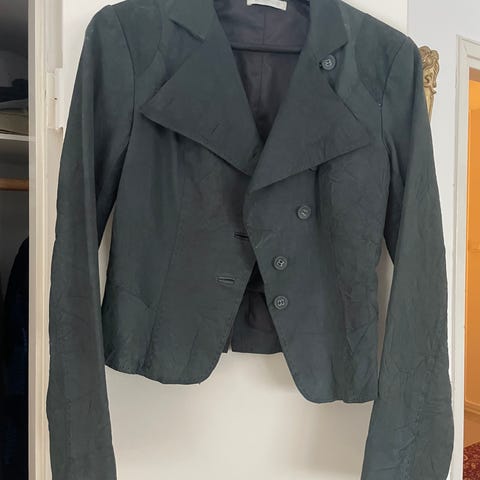 Jakku tekstiili nahkaa, ehyt, pitämätön. Jakussa kauniit metallinappi koristeet.