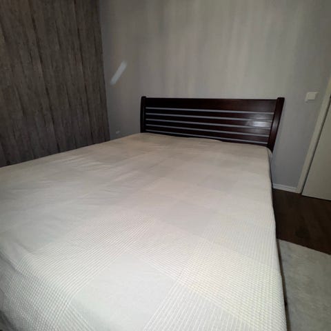 Kaksipuoleinen päiväpeitto, toinen puoli vaaleampi harmaa ja toinen tummempi. Mukaan kaksi samaan sarjaan kuuluvaan koristetyynyliinan päällistä.