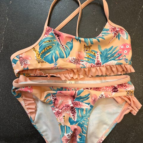 Uusi uikkari koko 5-6, vastaa mielestäni 110 kokoa. Sovitettu vaatteiden päällä ja olikin pieni.
