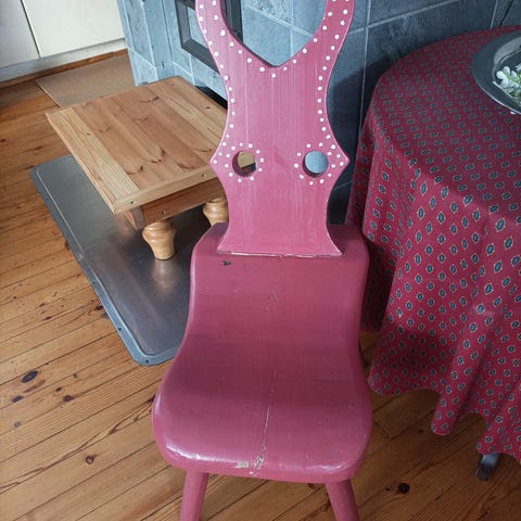 Käsityönä tehty pöytä ja tuolit