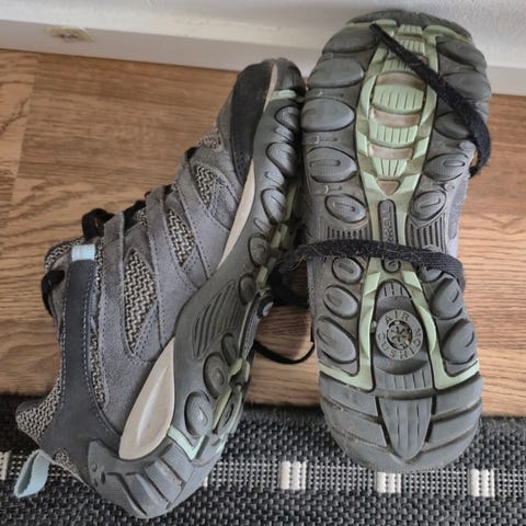 Kengät on suunniteltu vaelluskäyttöön, ja niissä on pohja, joka tarjoaa hyvän pidon erilaisilla alustoilla. Väri on harmaa ja musta, ja materiaalina on yhdistelmä kestävää kangasta ja nahkaa.