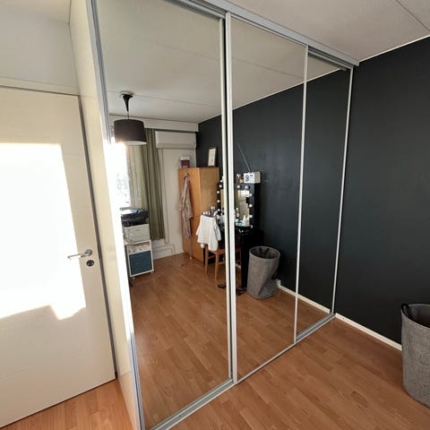 Korkeus noin 245cm ja leveys noin 110cm. Mukana katto- ja lattiakiskot.