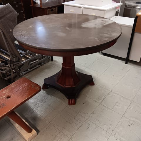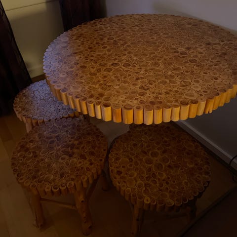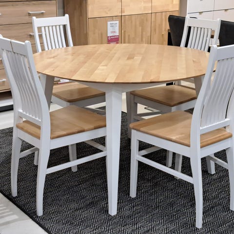 35mm paksusta haapalankusta käsityönä valmistettu pyöreä 100cm ruokapöytä. Pöydän jalat mäntyä.