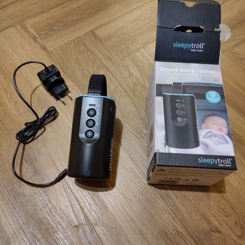 Vähällä käytöllä ollut pattereilla toimiva vaunujen / rattaiden hytkytin.