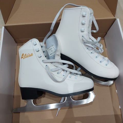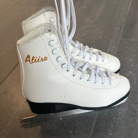 Alisa luistimet koko 35 valkoinen, soveltuvat lasten käyttöön. Raksamitalla mitattuna sisämitta 21,5 cm.