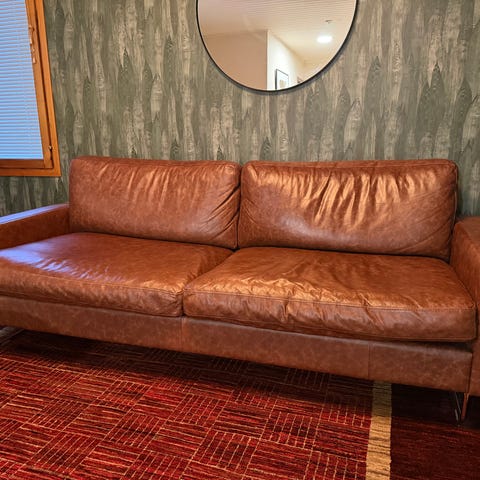 Iso vaalea nahkasohva