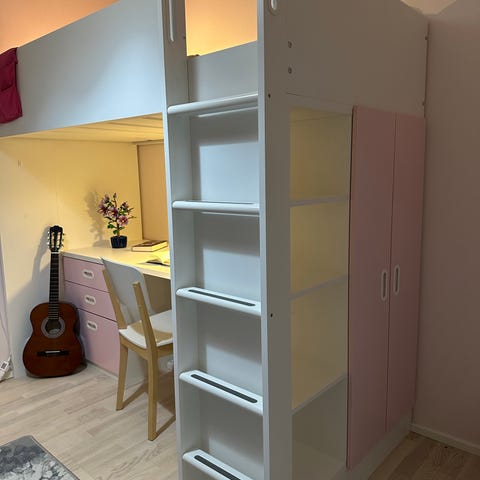 Valkoinen parvisänky , mäntyä, kuultovalkea.