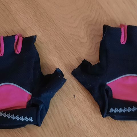 Kahdet lasten pyöräily-/skuuttihanskat. Kunto moitteeton. Ollut meillä käytössä n. 6-9v iässä.