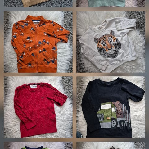 Suurin osa tullut meille uutena. Kaikki vaatteet menee todella hyvin vielä seuraavalle. Suurin osa vaatteista on todella hyvässä kunnossa ja vähän käytetty, pari sellaista jota enemmän käytetty. Kaikki vaatteet ovat ehjät, en huomannut tahroja. Yhdet housut paikattu. Paketissa on hupparit/collegepaidat, collegehousut, leggingsit ja pitkähihaiset paidat. Saattaa löytyä muutakin mukaan joka ei ole kuvassa.