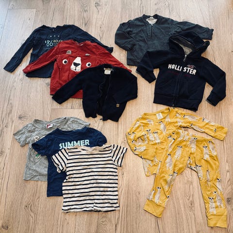 Poikien vaatepaketti 92/98/104. Eniten 98 kokoa vastaava.