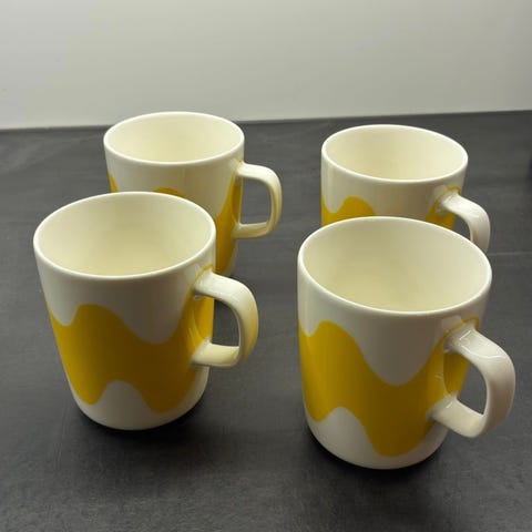 Marimekon Lokki -mukit. Musta/valkoinen. 4dl isot mukit. Saatu lahjaksi, 2 vielä tarrat, 2 käytetty ja pesty kertaalleen. Omaan käyttöön kuitenkin turhan isot.