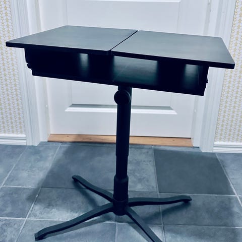 Myydään kuvissa näkyvä läppäripöytä. Pieniä kauneusvirheitä päällä, jotka näkyvät kuvassa. Osan voi saada putsaamalla pois. Toimii myös hyvin pienenä sivupöytänä.