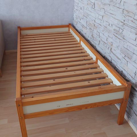 Myydään siistikuntoinen kuvissa näkyvä Lundian sänky. Puuosat mäntyä, sivulevyt valkoista vaneria.