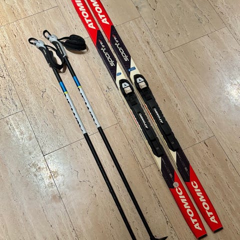 Fischer Sprint crown -pitopohjasukset ja Rex Apollo -sauvat. Sukset 120cm ja sauvat 90cm. Erinomaiset sukset perinteisen hiihdon harjoitteluun pitopohjan ansiosta.