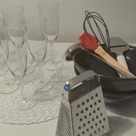 Skoda 50v lautanen, miesten kengät, stainless steel rannekoru, kauko-ohjattavat kynttilät, muumi peltirasia, lasituikku, Sakara kiertueen CD, cocktail-setti