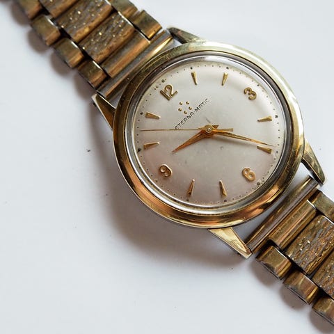 Hyväkuntoinen Eterna kaupan. Siro puku/arkikello, johon vaihdettu paristo pari kuukautta takaperin. Kellossa tuore Hirsch nahkaranneke tummanruskealla sävyllä. Kellossa alkuperäinen nuppi. Kellossa siro kaiverrus takakannessa. Myydään uusien tieltä pois.