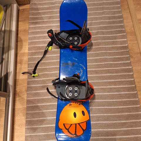 Lumilauta ja siteet hyvässä kunnossa. Pientä käytön jälkeä päällä, mutta pohja kunnossa ja naarmuton.