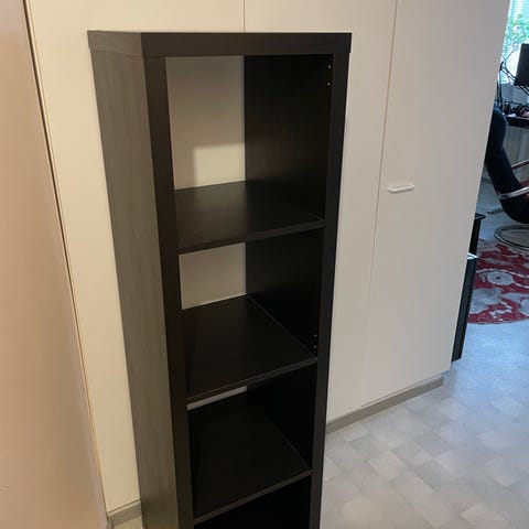 Myydään Ikean Kallax -hylly. Mukana kaksi siireltävissä olevaa ovellista lisäosaa. Kankaiset laatikot eivät kuulu hintaan. Tämä hyllykokonaisuus on ollut aktiivisessa käytössä monta vuotta, joten muutama naarmu siitä löytyy. Kulumat löytyvät kuvista.
