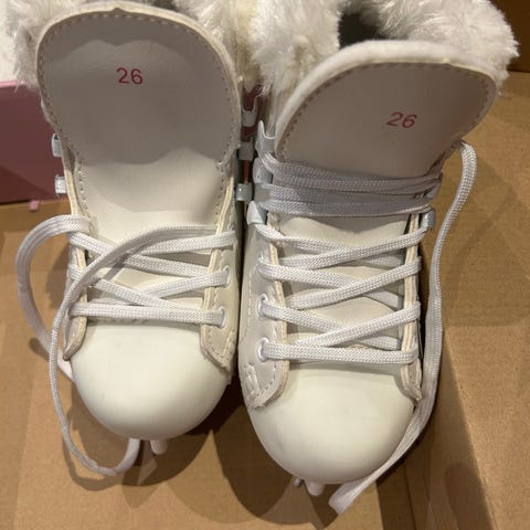 Lasten Emmi-merkkiset nauhaluistimet, koko 26, väriltään valkoinen.