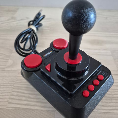C64 joystick. Johdot päässeet hiukan esiin. Ei testattu. Eikä takuuta näin vanhalle oheislaitteelle.