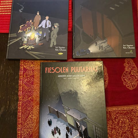 Sarjakuva-albumi Alvar Aalto Fiesolen puutarhat osa 1 ja 2. Hinta yhteensä.