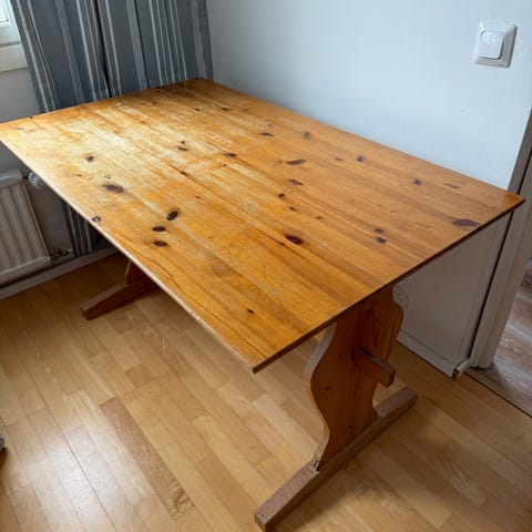 Upea kuvan pirttipöytä myytävänä. Kunto hyvä. Runko erittäin tukeva. Ajan tuomia jälkiä / kolhuja.